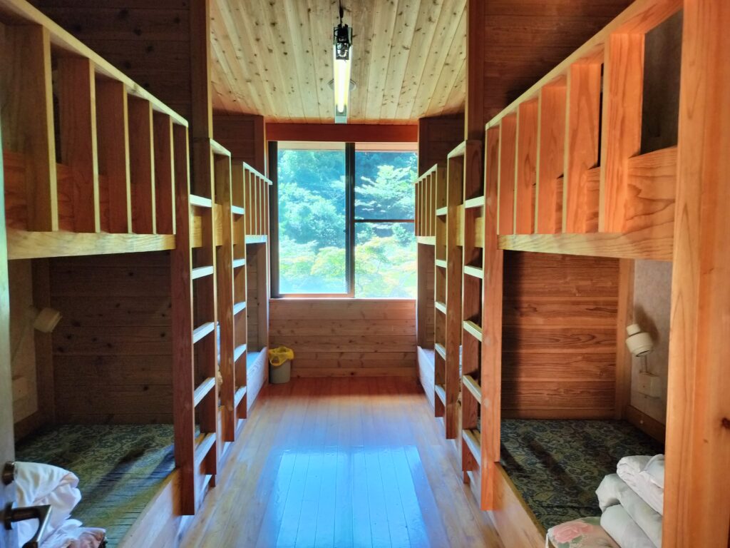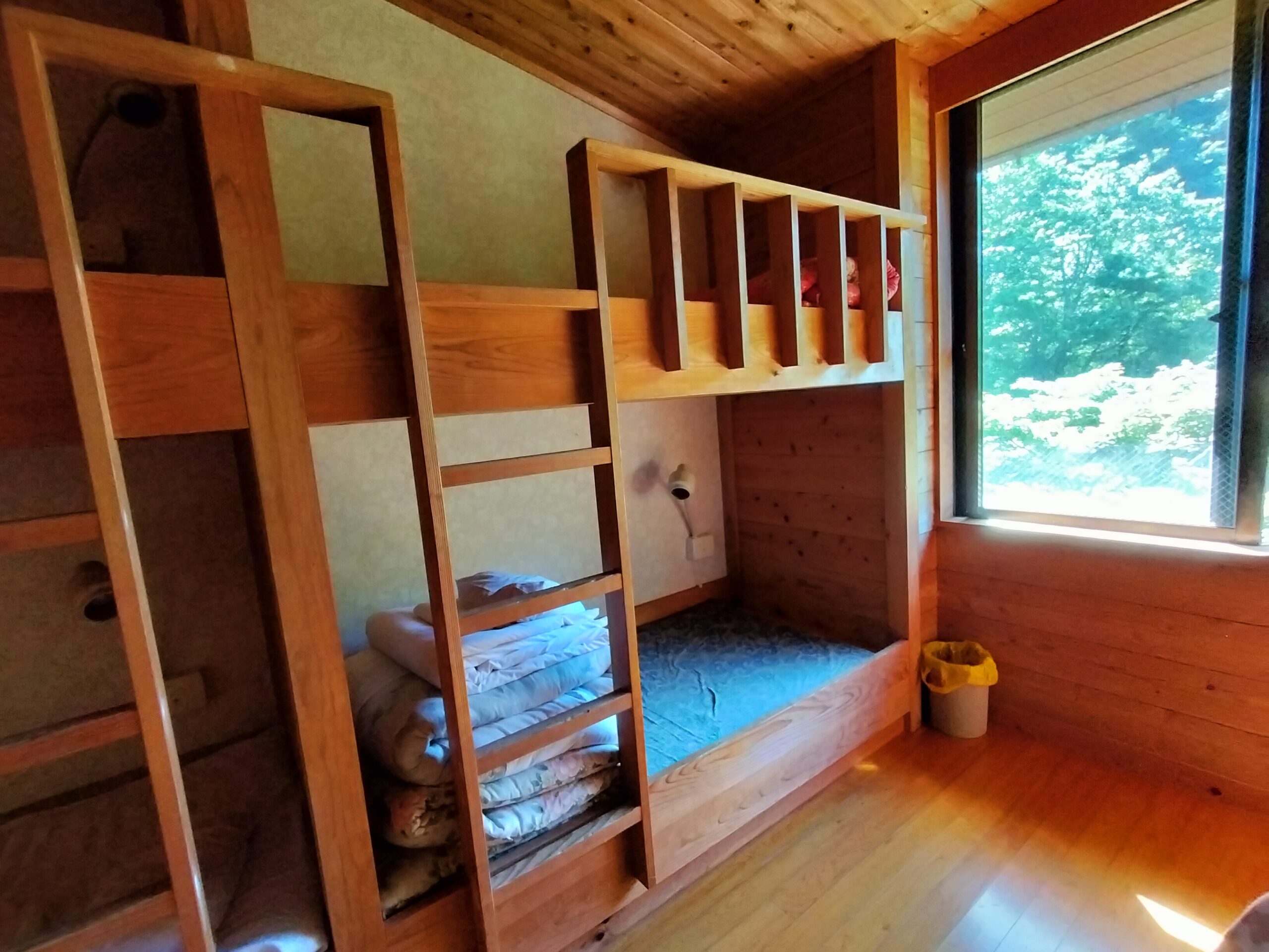 洋室は2段ベッド×4台で、各部屋の定員は最大8名です。ベッドの枕元にはライトがあります。